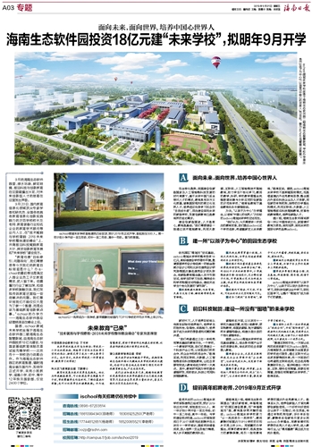 据介绍,海南生态软件园将原创一所以中国传统文化、家国情怀教育为底色、面向世界、面向未来的国际化学校品牌ischool。