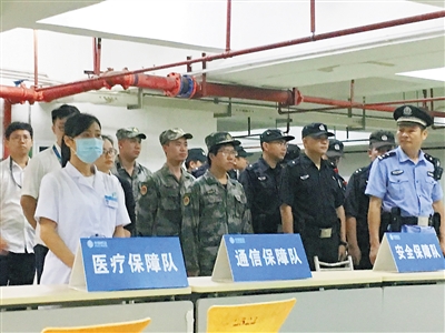 医疗保障队、通信保障队、安全保障队人员在防空地下室集结。