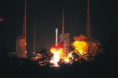 9月19日22时07分,我国在西昌卫星发射中心用长征三号乙运载火箭(及远征一号上面级),以“一箭双星”方式成功发射两颗北斗导航卫星。 新华社发(梁珂岩 摄)