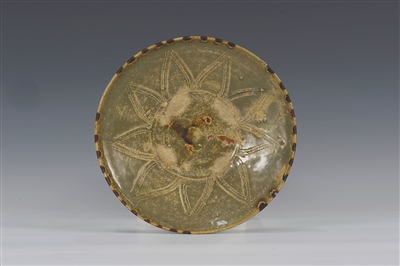 南朝青釉褐彩刻花盘。(海南省博物馆藏)王浩 摄