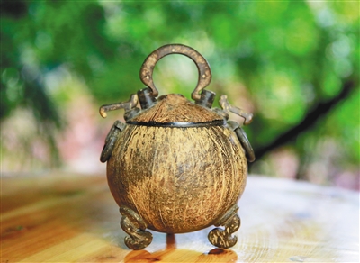外形古朴拙憨的椰壳,经过椰雕手艺人修整打磨、赋形雕刻,便拥有了新的生命,化身为独一无二的艺术珍品。