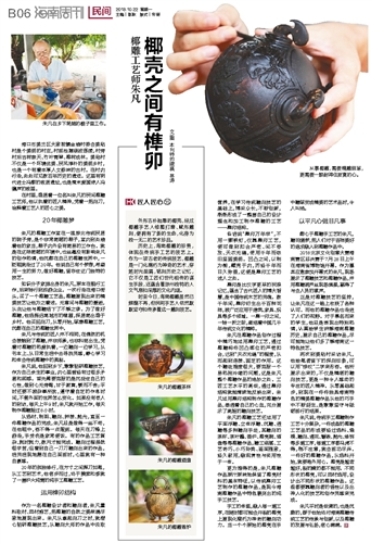 从事椰雕,需要精雕细琢,更需要一颗耐得住寂寞的心。