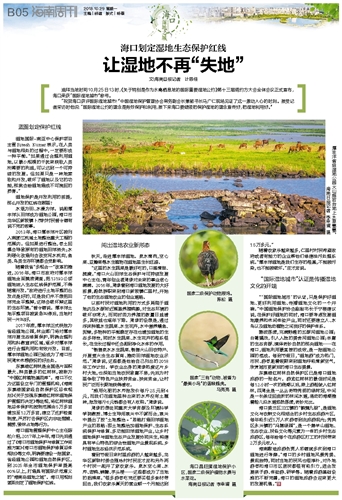 “‘国际湿地城市’的认证,只是保护好湿地、更好利用湿地、传播湿地文化的一个开端。”中国湿地保护协会副秘书长于宁楼建议说,在保护好湿地的同时,海口要考虑发展湿地康养和休闲体验产业,同时还要建立人、水鸟以及湿地动植物之间良好的保护体系。