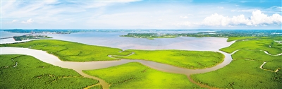 当无数颗红树种子落在热带北缘的沿海滩涂,一片绵延50多公里、面积3337公顷的红树林湿地便在海口东寨港欢快地荡漾开来。