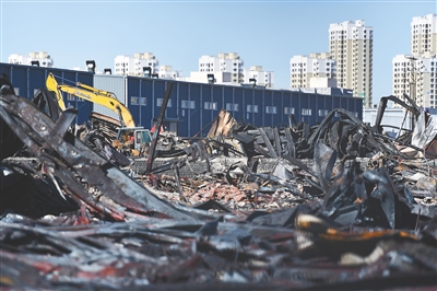 10月29日,在天津大港开发区的中外运长航5号仓库外,火灾已被扑灭。 新华社发