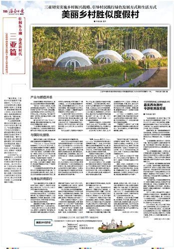 在不少人眼中,西岛渔村可以说是三亚美丽乡村建设的范本。“曾经默默无闻的小渔村,与景区相融合,竟一步步成为‘5A级海岛生活区’。”三亚市旅游委负责人说,美丽渔村的华丽蜕变,成为“美丽乡村+旅游产业”的生动示范。