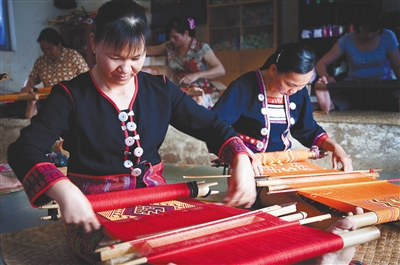 不仅是刘香兰,这支特殊教师队伍的成员一个个都不简单。尽管从外表看,她们与普通农家妇女无异,但实则都是黎锦纺织技艺的省级、市级传承人。