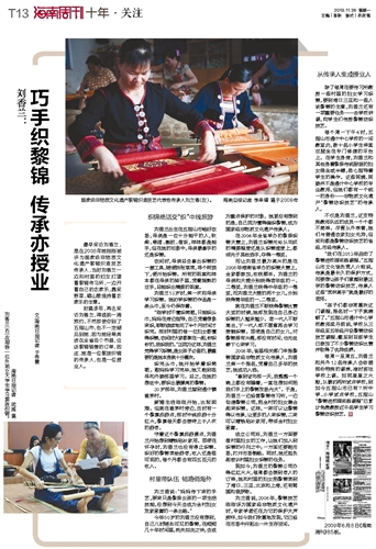 刘兰香说,2006年,黎锦技艺刚刚评为国家级非物质文化遗产时,专家学者还在为它的保护大声疾呼,如今我们欣喜地发现,它已经在市场中开拓出一片生存空间。