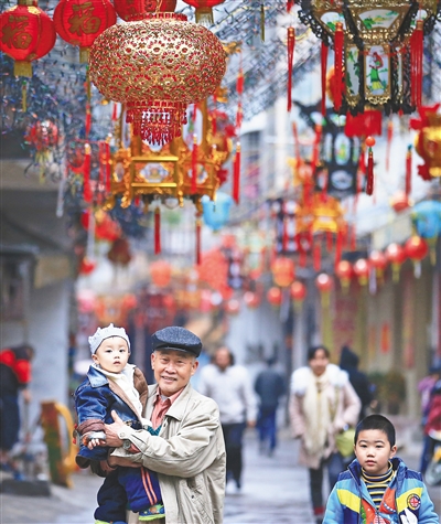 每年元宵节,海口府城都张灯结彩,流光溢彩,吸引市民、游客观赏。 海南日报记者 张茂 摄