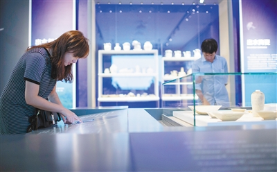 市民在省博物馆体验文物修复的互动游戏。 海南日报记者宋国强摄