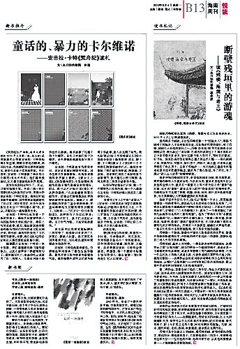于是,在满目的红艳中,打开了这一天的《海南周刊》看到赵瑜写的一篇名为《童话的、暴力的卡尔维诺》的文章,与安吉拉·卡特不期而遇。