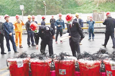 本报金江12月11日电 (记者良子 通讯员黄金)12月11日上午,在省公安厅禁毒总队的现场指挥下,屯昌县禁毒委员会、屯昌县公安局在澄迈县老城经济开发区海口焚烧发电厂举行毒品销毁仪式,集中销毁“2015-892”公安部毒品目标案件专案缴获的毒品及制毒原料1534.2公斤,案值2.47亿元,创全省历年来一次性销毁毒品数量之最。屯昌县人民检察院、生态环境保护局等工作人员全程监督毒品销毁活动。据了解,此次销毁的毒品是屯昌警方2015年在江西省遂川县侦破“2015-892”公安部毒品目标案件缴获的毒品,其中,氯胺酮(K粉)1236.6公斤,制毒原料盐酸羟亚胺(第一类易制毒化学品)297.6公斤。此案是我省有史以来侦破的最大制毒案,是我省建省以来一案缴获毒品氯胺酮数量最多的案件,也是海南首例实现从毒品销售末端顺线深挖,直至打击源头制毒工场的案件。