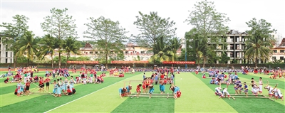 近日,保亭黎族苗族自治县保亭中学举行竹竿舞比赛,来自该校初一和高一年级的600多名学生参加了比赛。据了解,自2003年以来,保亭将竹竿舞等“非遗”文化引入校园,让优秀民族传统文化得以传承、弘扬。本报记者 武威 特约记者 黄青文 摄