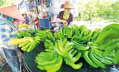 澄迈县桥头镇,蕉农正在打包刚采摘的香蕉。本报记者 陈元才 摄