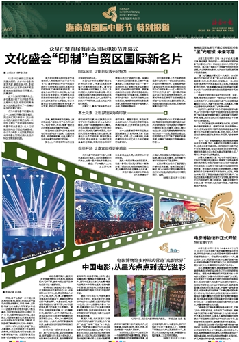 别具一格的开幕式给到场嘉宾、印度一影视公司负责人萨黑尔·塔瑞尔留下深刻印象,他告诉海南日报记者,开幕式的内容设置得十分紧凑,来自中国以及国际上的知名艺人的表演也十分精彩,特别是舞台的整体设计夺人眼球,通过这场开幕式,他对电影节接下来的活动有了更多期待。