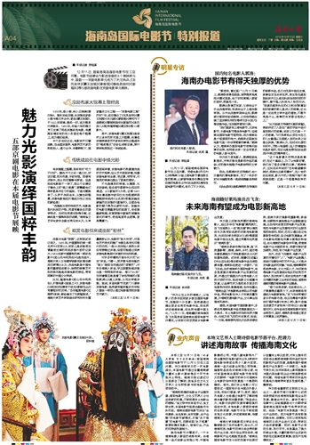 ■ 本报记者 徐晗溪12月11日,首届海南岛国际电影节在三亚开幕。电影节组委会为影迷准备的8个展映单元中,国韵——京剧电影单元成为了关注热点。《龙凤呈祥》《霸王别姬》《秦香莲》《穆桂英挂帅》《谢瑶环》等5部京剧电影在京剧电影单元展映。