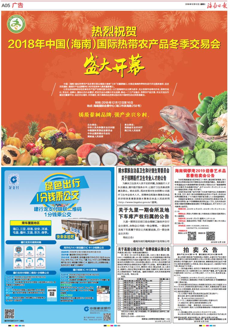 热烈祝贺2018年中国(海南)国际热带农产品冬季交易会盛大开幕