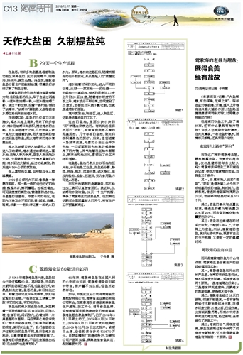 而瓦片池晒制的是高端盐,即不经过加工就可以直接食用的。就这样,从纳潮取水到收盐,29天一个生产流程,确保了莺歌海盐的优良品质。但如果在这期间出现雨量较大的天气,所有生产工序要重新来过。