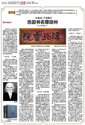 人称“潘夫子”的他,身后让今人忆起其学行事实,不仅是他在东瀛很有影响的书法著作《楷法溯源》,不只是他创办至今仍存的文昌铺前溪北书院,也不单是他所撰脍炙人口的五公祠名联,而更是他写给张之洞的《琼崖建省理由与建设方案》,开启了激荡海南百年的建省史。仅此,就足以让海南的乡民,世代感念这位“生平百不如人”却又怀抱炽热爱国爱乡热情的前清举人。