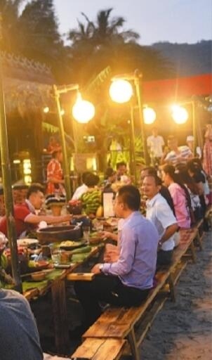 宾客在万宁品尝黎族风情“长桌宴”。 海南日报记者 张杰 摄