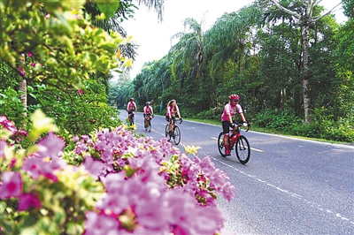 国际友人在万宁骑游。 海南日报记者 袁琛 通讯员 吴小静 摄