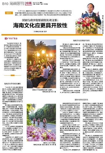 周文彰认为,海南文化建设,首先应该要更具开放性。