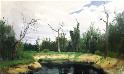 巴比松画派是19世纪30-40年代出现于法国的一个风景画派。巴比松紧挨着枫丹白露森林,1850年前后,这里迷人的风景和纯朴的民风吸引了画家卢梭迁居于此,接着柯罗、米勒等大批画家也到这里居住,著名的“巴比松画派”便由此开始。他们描绘暮色中的牧人和畜群,表现在柔和的暮霭中缓缓前行的牲口,描画充满光线和阴影的林间空地,展现在田地中辛勤劳动的农民。海南画家笔中的景象令人联想到巴比松画派,似乎再自然不过。