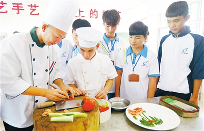 昌江县职业技术学校烹饪班教师在教学生制作花摆。本报记者 苏晓杰 摄