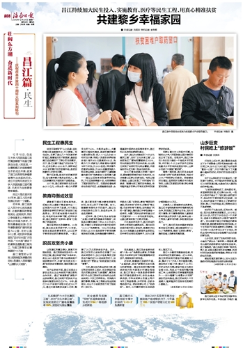 近年来,昌江坚持以人民为中心的发展思想,让诸多惠民政策落到实处、起到实效,同时以争创基本公共服务均等化示范县为抓手,不断完善基础设施,仅去年便新建和扩建市政道路14公里、农村公路90公里,成功获评我省首批“四好农村路”示范市县;“大水网”建设下的渠系连通配套工程完工,为昌江新增农业灌溉面积10万亩……