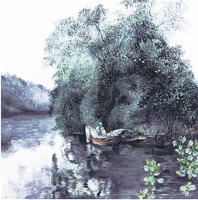 画家林峥明作品《早渔》。