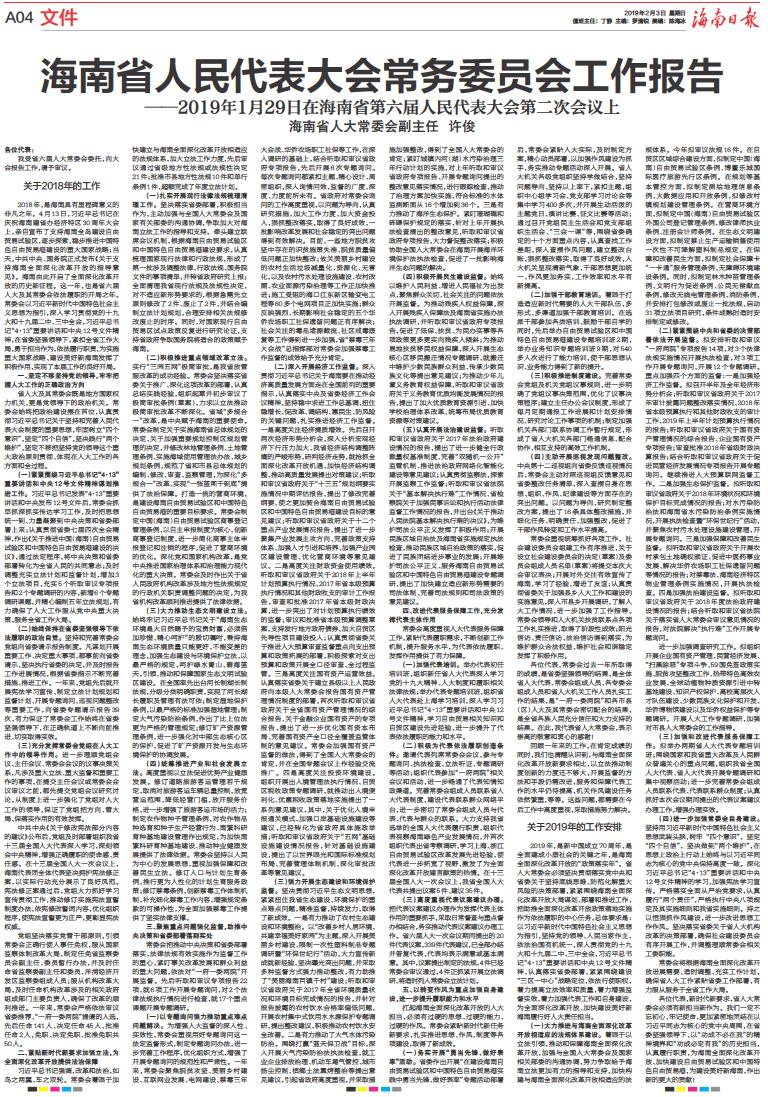 海南省人民代表大会常务委员会工作报告