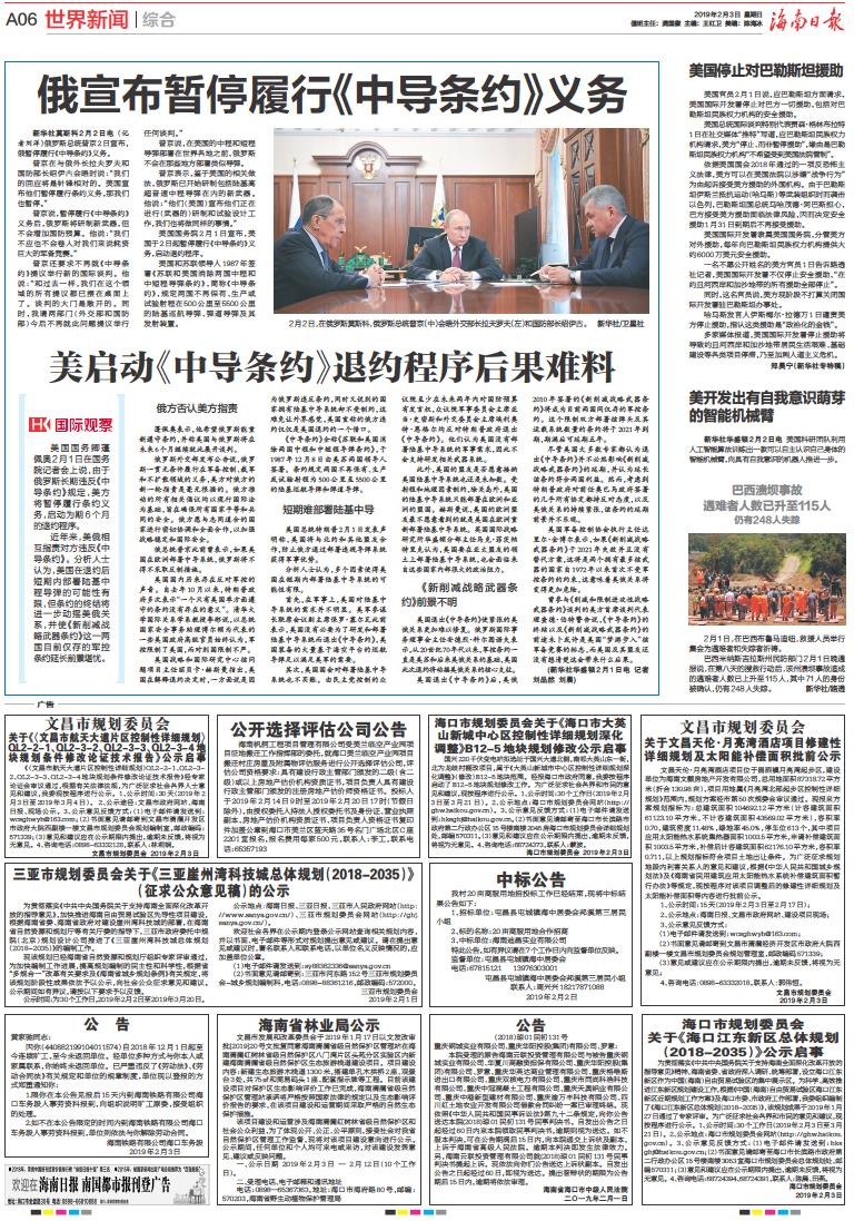 俄宣布暂停履行《中导条约》义务