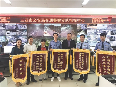2月10日,大连游客给三亚市公安局交通警察支队指挥中心送来5面锦旗。 三亚交警供图