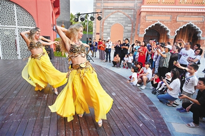 2月10日,三亚海昌梦幻海洋不夜城,来自国外的表演团队为游客们献上精彩的文艺节目。 本报记者 王凯 摄