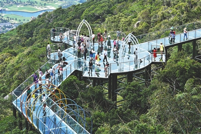2月7日,游客畅游亚龙湾热带天堂森林公园。 通讯员 黄庆优 摄
