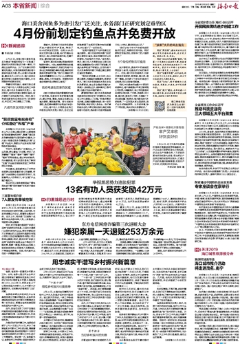 “法规只是规定不允许在禁止区域内垂钓。海口市政府相关部门划定禁止垂钓区域后,其余范围则可让市民垂钓,与法规并不冲突。”该负责人表示,海口市人大常委会法工委已注意到,随着美舍河水质的不断改善,河道内鱼群密度不断增加,正在和海口市水务局等相关部门沟通过禁止垂钓区域划定等事宜。
