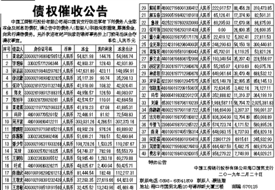 债权催收公告