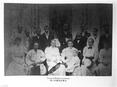 1898年,海口外籍居民聚会,身后的对联为清代大学士张廷玉的遗训。
