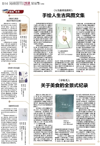 所以董克平于寻味、品味之外,更会回味、思味,在《回味儿》章节里,既有《食说清明》这样有关饮食风俗的随笔,也有《鄂菜变楚菜,湖北菜找到了根》这样关于菜系源头考证的论述。董克平的文章,是他体验饮食、感受文化、参悟生命产生的全景式纪录,他把传统食物看作一种人文的传承,说因之“与历史、与祖先,有了穿越般的勾连,你能感觉到味道传承中的血脉相连”。仔细研读此话,能让人联想到若干与饮食有关的记忆,从而引发起内心更多的情感波澜。