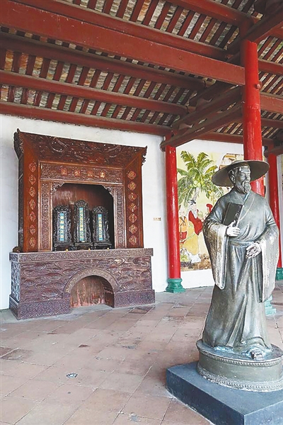 光绪十五年(1889年),朱采重修苏公祠,创建海南第一楼和五公精舍,书院所剩地方不多。至光绪二十五年(1899年),书院开始迁往城内学前街遗爱祠,二十七年建成,民国初琼山中学借作学校。而今,只有苏公祠内墙拱门上“东坡书院”4个楷书,可以唤起游人对这段历史的回忆了。