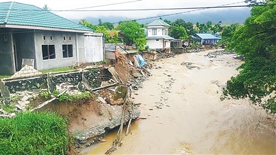 3月17日,在印度尼西亚巴布亚省森塔尼,洪灾过后一片狼藉。