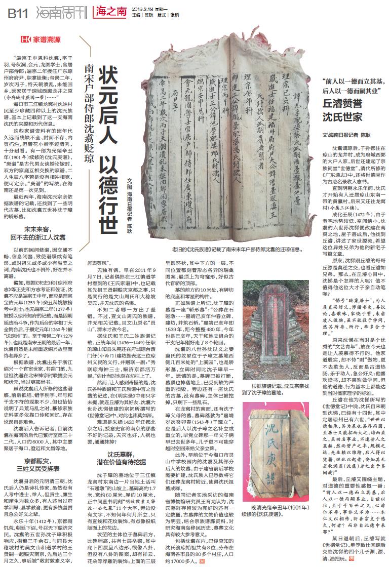 丘濬赞誉沈氏世家