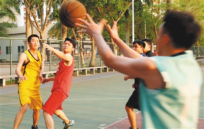 海口的大多数单位和小区都有灯光篮球场,每天下午6点,这些篮球场逐渐热闹起来。海口世纪公园的几个露天篮球场是海口利用率最高的球场,每天下午4点开始,不少球迷顶着烈日开始打球,一个多小时后球场的人就爆满了。