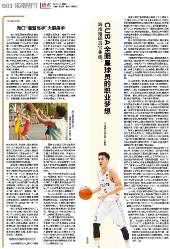 上接B02版海口草根篮球赛既然是模仿NBA赛制,那么全明星嘉年华活动少不了。海口草根篮球赛的嘉年华活动既照搬了NBA的技巧挑战赛、三分球大赛和全明星正赛三个部分,还独创了3V3对决,A、B区两队分别由一名队员带领一名10岁和12岁的小队员上场比赛。小球员是来自2018年中国小篮球联赛(华南区海南分赛区)U10组和U12组的冠军队员。高展说,此举是为了能让海南篮球少年感受篮球魅力和趣味。