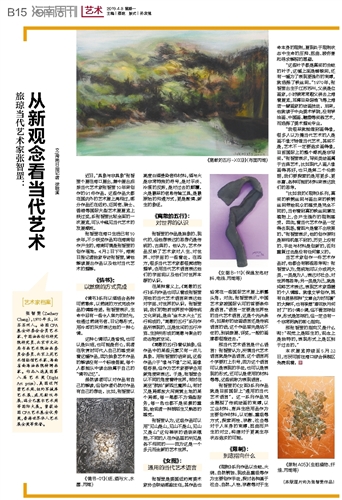 张智罡在海口生活已有10余年,不少获奖作品均在海南创作产生的,海南可谓是张智罡的创作福地。4月2日下午,海南日报记者独家专访张智罡,请他解读展出作品以及他对当代艺术的理解。