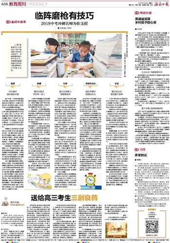 ■ 本报记者 计思佳上周《教育周刊》为考生们介绍了高考部分学科的冲刺技巧。目前距离我省中考不足40天,本期继续邀请我省中学名师对英语等学科中考复习支招。