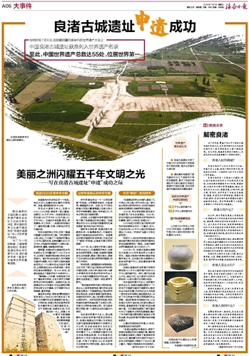 联合国教科文组织第43届世界遗产委员会会议6日经过审议决定,将中国的世界文化遗产提名项目“良渚古城遗址”列入《世界遗产名录》。与广为人知的殷墟、三星堆等遗址相比,良渚古城遗址所处年代更为久远,其价值多年来一直居于中国考古界的最高层面。