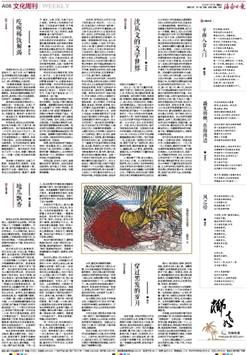 近年来,研究沈从文的书又成了我的案头书、枕边书。一九八九年,当我还是个大学生时,读的第一本研究沈从文的学术专著就是北京三联书店出版的《从边城走向世界》,在沈从文研究领域,沈从文的湖南老乡凌宇教授的这部著作,无疑是一部里程碑式的作品,他从沈从文的人生道路、人生观、艺术观以及由小说、散文建构的文学世界诸方面,对沈从文及其文学创作进行了全面评价,揭示出沈从文传奇人生的诗性特征及其文学创作在中国现代文学史上的独特品格。从《边城》《长河》《从文自传》《湘行散记》等文学著作,到《中国丝绸图案》《龙凤艺术》《中国古代服饰研究》等学术专著,每每有业余时间,我总会拿起沈从文的书来读,反反复复读了三十几年,爱不释手,如痴如醉。