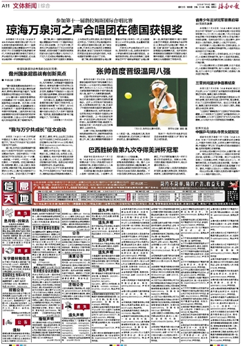 据了解,第十一届勃拉姆斯国际合唱比赛暨音乐节共有17个国家和地区的45支队伍参赛。为了这次大赛,万泉河之声合唱团进行了长达半年的紧张排练,该团共排练了《美丽的草原我的家》《彩云追月》《黎家心花开》《久久不见久久见》《挂念》等参赛合唱作品。