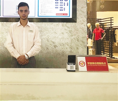 今年暑假,张轩在三亚一家商场兼职当俄语翻译。本报记者 徐慧玲 摄